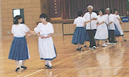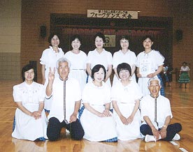 10名で参加したので2名余ってしまいました。初めは外れて見ていて、2曲目から入ろうと思っていたのですが、それもつまらないと思い、当日の朝、慌てて1カップルの構成を考えました。曲に合わせて単純に動いただけでしたが、出来て良かったと思います。 |