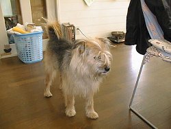 ペンション・ワンサポナタイムさん家のムゥ〜ちゃんです。お家にはいると、まず最初にムゥ〜ちゃんの洗礼を受けるそうです。洗礼とは「ワン、ワン、」と吠えられることで、私は嬉しいことに吠えられなかったのです。それは私が犬好きだったからか?それとも怖かったのかな? |