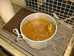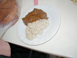 お鍋の中身は、お店やさんもビックリのカレーです。美味しそう♪ 梟マムさん、お料理得意でしょう?なかなかの腕前と見ました。 |