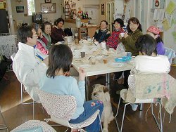 お子さんが増え、Pさんは主賓席から一般席に移動です。でも、話はどんどん盛り上がり楽しいオフ会になったのです。 皆さん、テーブルの下をご覧下さい、ムゥ〜ちゃんがお強請りしています。 |