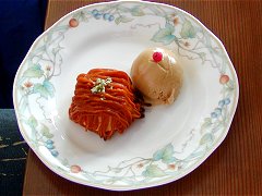 きみこさん注文のケーキセット クルミのタルト+カボチャのアイス |
