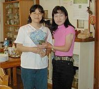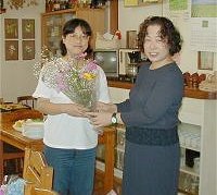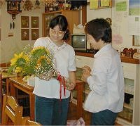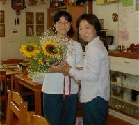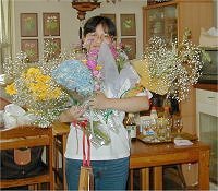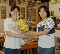 | mayumiさんからは大きなヒマワリを頂き嬉しそうです。 | ||