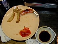 | 食べたカニの残骸 | 空っぽのお皿〜〜。 何の串? |