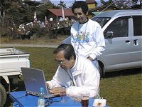 ZOOMが持参したパソコンで書き込みをしているのはペアハットさんです。 |