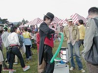 くまぱぱの着ぐるみ制作者、yamaneさんが支度をしています。 |