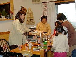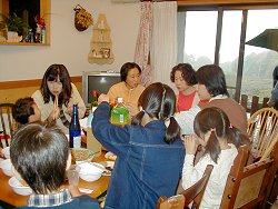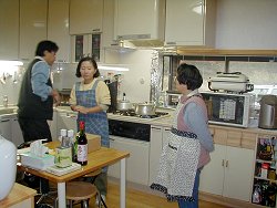 台所では忙しく三人で用意の真っ最中でした。「おかあさん、忙しい思いをさせて申し訳ありません!」 |