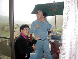 mayumiさんも到着して全員集合!この日は残念ながら雨なので男性はテラスにシートを張って外でオフ会をし、女性は室内で愉しむことになりました。 |
