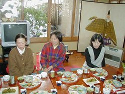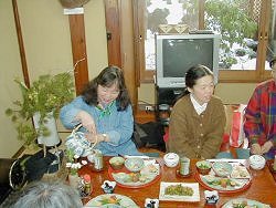 さぁ〜お食事が並んできましたよ。まずは、お茶でも飲んで・・。 |