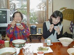 嬉しそうな表情でしょう?食べ始める前とはずいぶん違いますね。満腹になると人間は優しくなるのです。 |