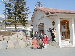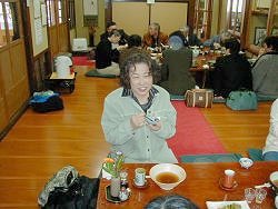 つたや旅館の女将さんに全員揃った写真を撮っていただきました。この写真もクリックすると大きくなります。 |