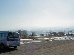 お腹はいっぱいなんですがミントさんが景色の良いレストランに連れっててくれました。この駐車場からお天気に恵まれると小諸の町並みや八ヶ岳もよく見えるとのこと。今日肉眼ではうっすら見えるのですが写真には写りませんね。(mayumiさんがシャッターを切ってくれました残念!) |