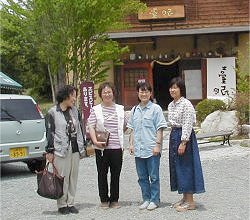 お食事が終わって記念写真、満足した顔に写っていますか?今回は昼間ですが次回は夜ゆっくりお酒を傾けながらお食事を楽しみに来るのも良いかも知れません。金・土・日曜日にはお任せコースが\3000〜\5000でお願いできます。皆さんも如何ですか? |