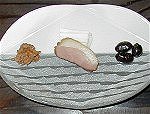 | 前菜三品 鴨の燻製長芋添え・肉みそ・丹波の黒豆 | 鮭の麹焼き | 季節のお野菜 其の一 |