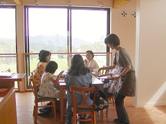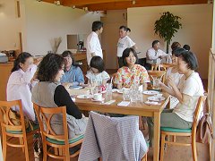 ペアハットさんです。実は、今日もおかしな事がありました。慌てて家を飛び出した私は、お店の名前を書いたメモを忘れて出てきてしまったのです。ところが同じようにペアハットママさんも・・。(笑) 私が車を止めてウロウロしているところにTELが!「今日のお店って何処だっけ?」3人がお店の前でウロウロ・・。先に来ていた二人がお店の中で手を振って合図をしてくれたのです。ガラス張りって良いですね、お互いが確認できるのですから。 |