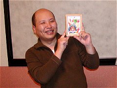 | やつねっと代表・清水氏から表彰されました。「やつねっとオブイヤー」我らがKANちゃん! | ||