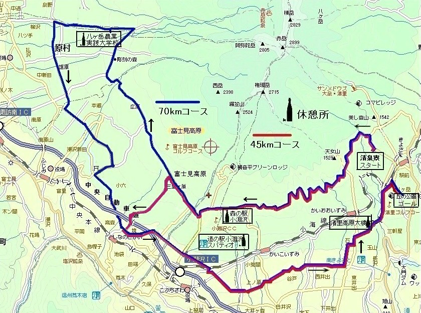 八ヶ岳高原サイクリング2007ルートマップ