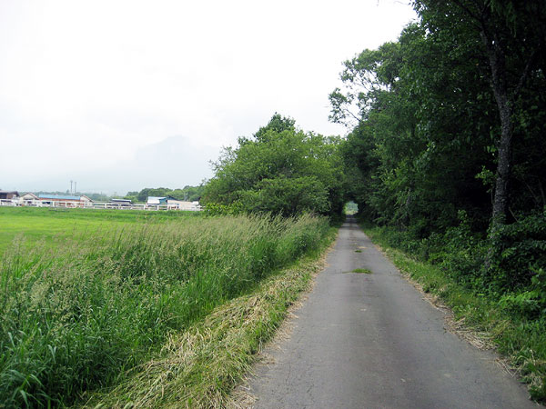 樹のトンネルとしては理想的な形をしていますが、このトンネル・・名前はありません。(笑 ヒント・・樹のトンネルの左の雲の中には八ヶ岳が見えます。 牧草や畜舎らしき施設の建物も見えますね。 と言うわけで、その牧場らしき施設の名前を当ててください。 正解はこちら