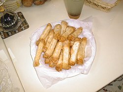 チーズの春巻きで良かったかしら?これを持ってきて下さったのは・・・Pさんですが、作って下さったのは奥様(ペアハットママのヒデさんです。)ご馳走様でした。 |