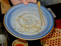 | 食べたカニの残骸 | 空っぽのお皿〜〜。 何の串? |