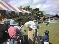 やつねっとカフェの仲間が遊びに来てくれました。たかまるさん、みっちさん、今日一才の誕生日を迎えたマックス君です。着ぐるみの間から顔を出しているのは、なおさんです。 |