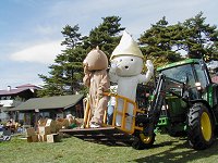 何と、パレードに「くまぱぱ」と「あるぴー」がデビューです。(着ぐるみの中ではどんな顔になっているのでしょう?) |