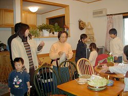 台所では忙しく三人で用意の真っ最中でした。「おかあさん、忙しい思いをさせて申し訳ありません!」 |