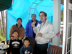 mayumiさんも到着して全員集合!この日は残念ながら雨なので男性はテラスにシートを張って外でオフ会をし、女性は室内で愉しむことになりました。 |