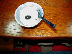 嬉しそうな表情でしょう?食べ始める前とはずいぶん違いますね。満腹になると人間は優しくなるのです。 |