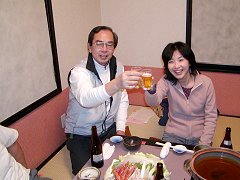 | 清水さんと乾杯! | ビールとデジカメ対決? | Pさん、ご機嫌?かすみさんと! |