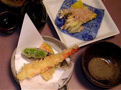 | 海鮮サラダ?(刺身の写真なし) | 水菜、うどん | 天ぷら、お新香 |